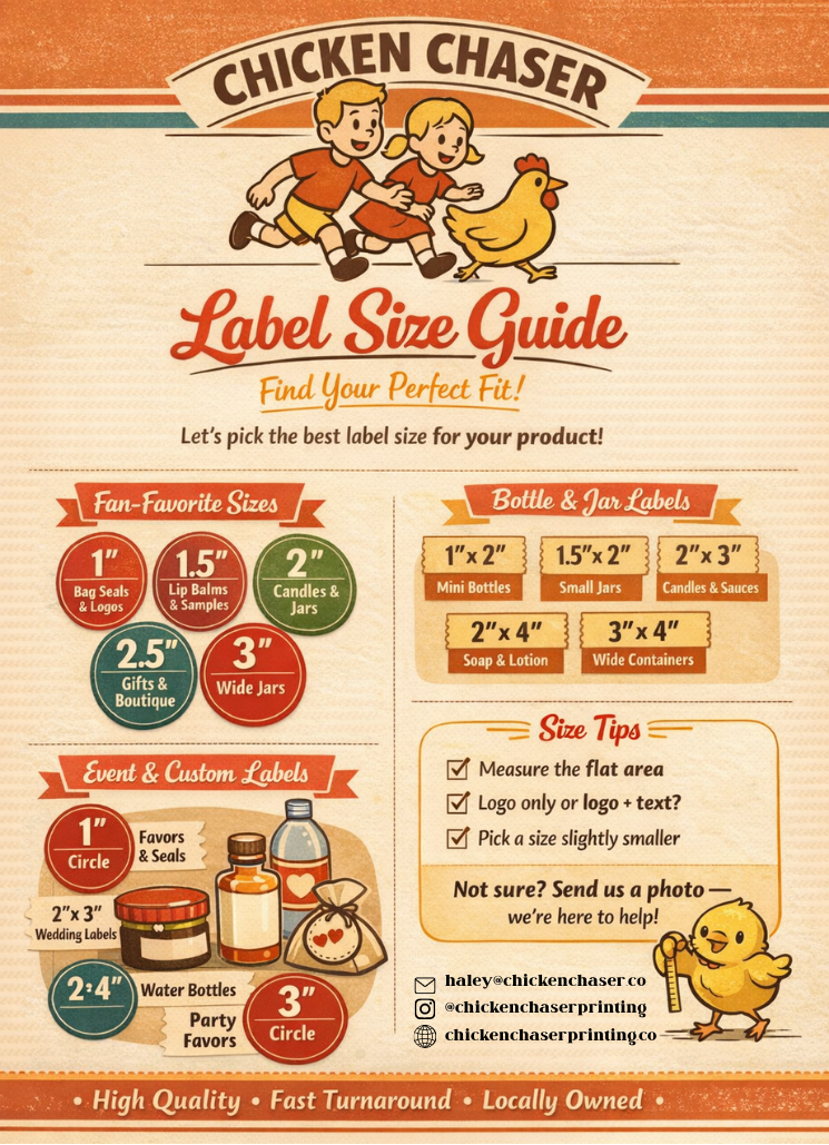 At Chicken Chaser Printing we’re all about turning ordinary packaging into wow-worthy products with custom labels. Whether you’re crafting candles, whipping up homemade jam, or launching a new business, we’ve got the perfect label to match your vibe.